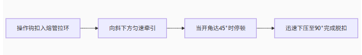 向上托舉熔管至與水平線(xiàn)成70°(斥力彈簧壓縮臨界點(diǎn))